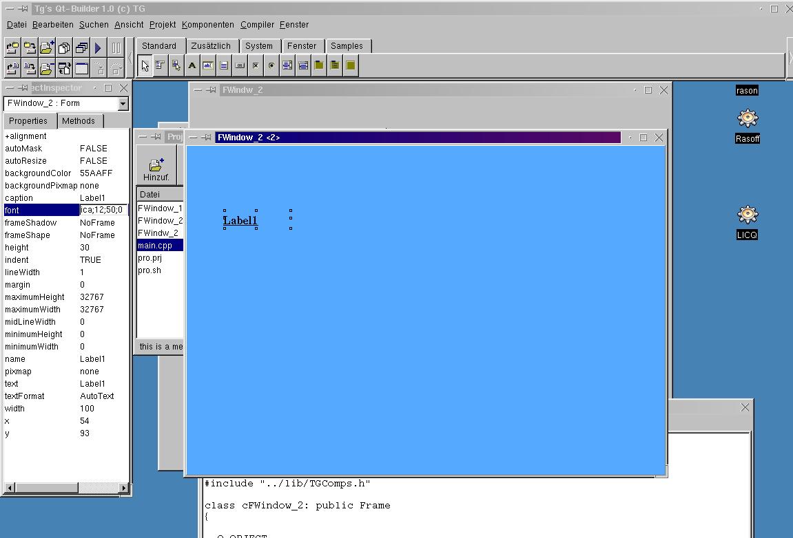 Im Hintergrund zeigt qtbuilder sofort den Quelltext.