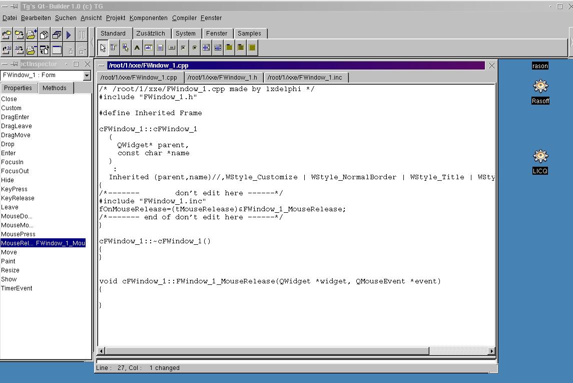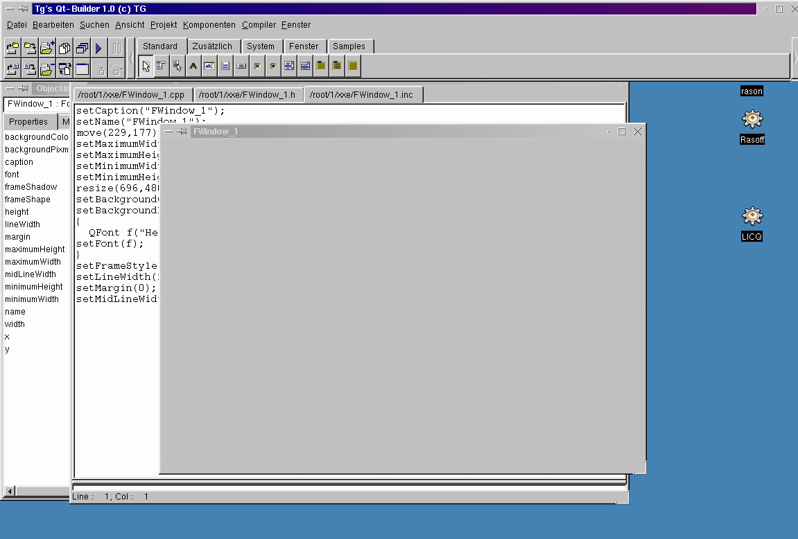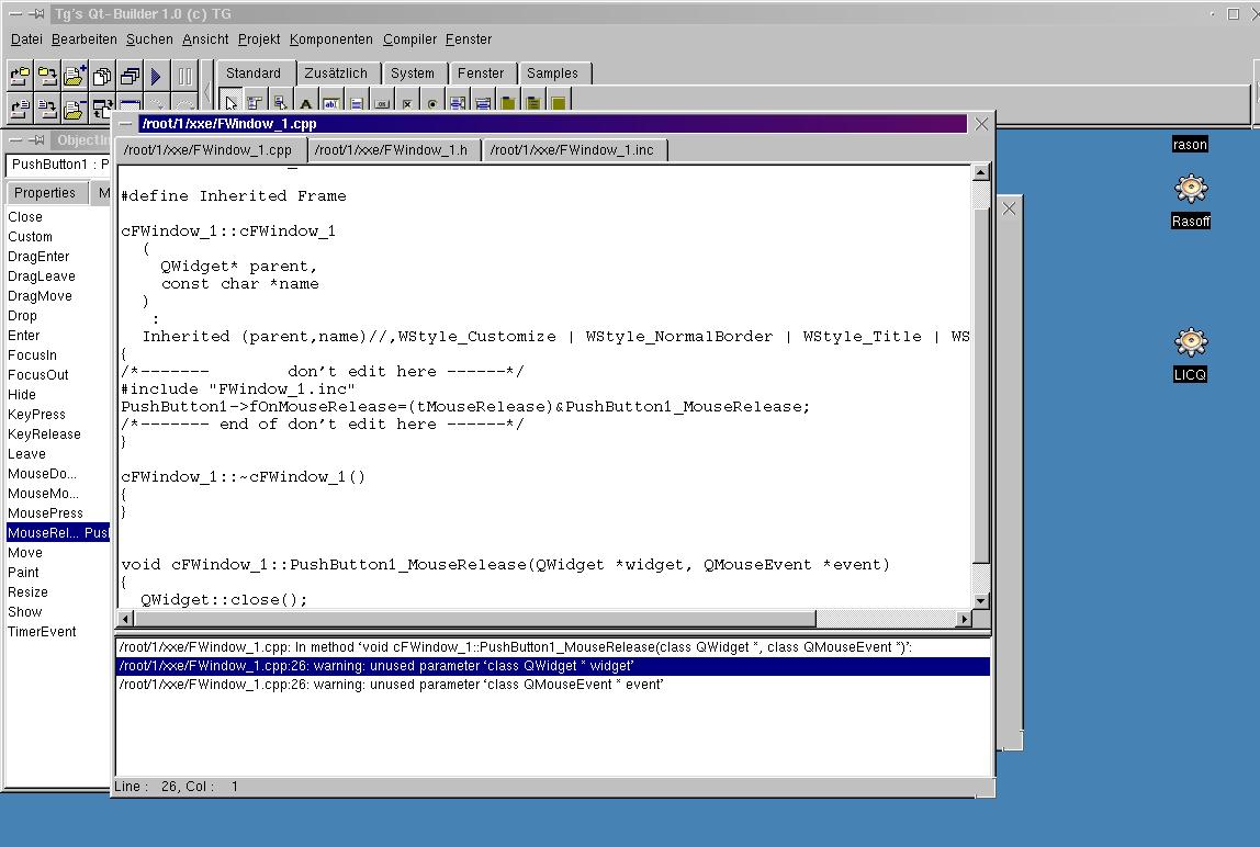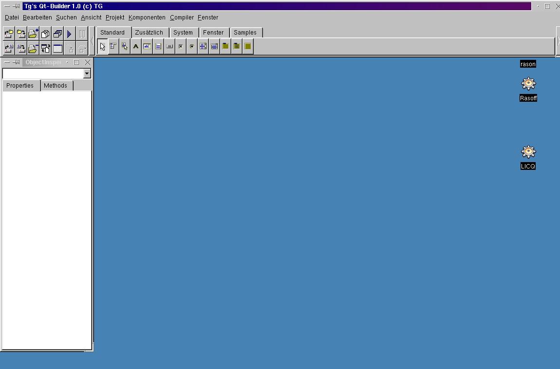 Qt-Builder ist ein RAD-Tool, welches Linuxprogrammierern den Programmerstellungsprozeß stark vereinfacht. Vor allem Windowsprogrammieren ist dieses Verfahren der Programmierarbeit längst bekannt. Delphi, Visual Basic, C++Builder, Visual-C sind nur einige Beispiele für Programme, welche Windowsprogrammieren das Leben erleichtern.